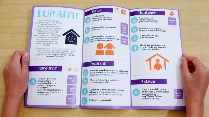 The Guide is organized in three times: Before, During and After. Each time has a triptych that contains a series of recommendations. It is accompanied by some organized and waterproof cards that explain the step by step of the actions for the preparation.